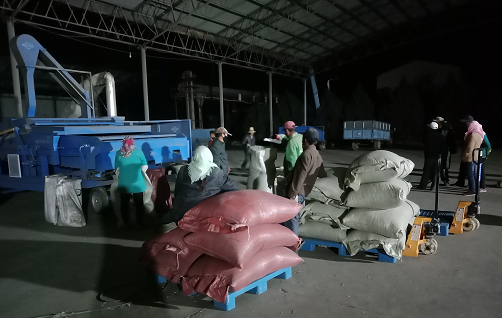 為按期完成收購任務,分公司購置的2臺精選機,每天要完成30噸以上的篩選任務,任務十分艱巨。分公司機關工作人員、基層單位管理人員在收購期間不休息,持續(xù)作戰(zhàn),早上8:00開機,堅持到晚上10:00以后,每天要持續(xù)篩選14小時以上。工作人員實行兩班篩選,中間不休息。